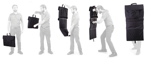 Lengüeta de tiro oculta en la parte inferior de la bolsa para facilitar el despliegue del escudo
