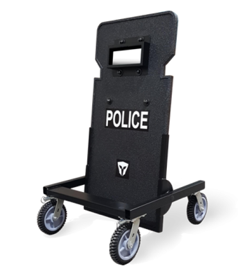 El escudo está construido con una armadura de cerámica avanzada que minimiza el peso al tiempo que ofrece durabilidad y capacidad para múltiples golpes. El escudo viene de serie con un mango de estilo tri-grip, la iluminación es opcional. Las ruedas, los ejes y los neumáticos antipinchazos también pueden soportar múltiples disparos.